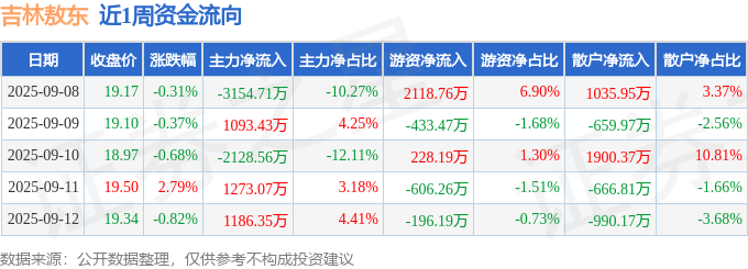 资金流向数据方面,本周吉林敖东主力资金合计净流出1730.42万元,游资资金合计净流入1111.03万元,散户资金合计净流入619.39万元。本周资金流向一览见下表: