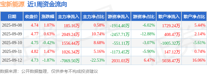 沪深股通持股方面,截止2025年9月12日收盘,宝新能源深股通持股数为4547.47万股,占流通股比为209.0%。