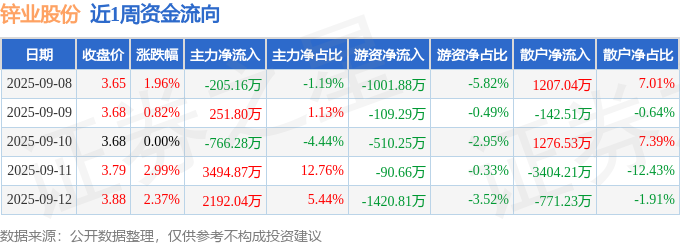 资金流向数据方面,本周锌业股份主力资金合计净流入4967.26万元,游资资金合计净流出3132.89万元,散户资金合计净流出1834.37万元。本周资金流向一览见下表: