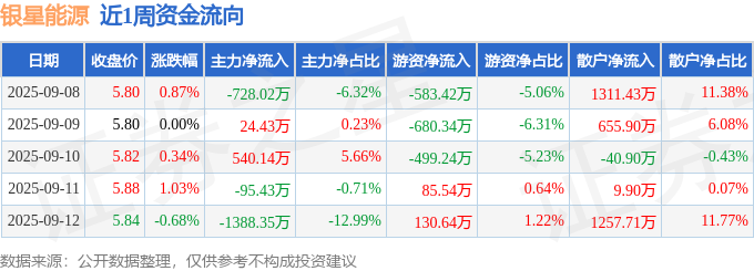 资金流向数据方面,本周银星能源主力资金合计净流出1647.22万元,游资资金合计净流出1546.82万元,散户资金合计净流入3194.04万元。本周资金流向一览见下表: