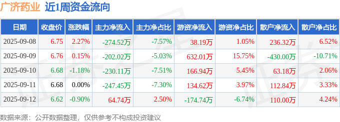 资金流向数据方面,本周广济药业主力资金合计净流出889.36万元,游资资金合计净流入797.02万元,散户资金合计净流入92.35万元。本周资金流向一览见下表: