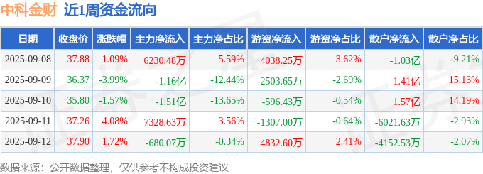 资金流向数据方面,本周中科金财主力资金合计净流出1.38亿元,游资资金合计净流入4463.77万元,散户资金合计净流入9298.12万元。本周资金流向一览见下表: