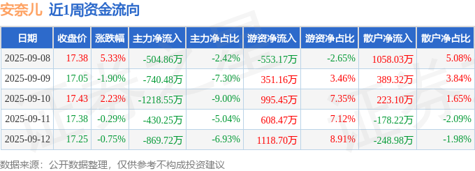 资金流向数据方面,本周安奈儿主力资金合计净流出3763.86万元,游资资金合计净流入2520.61万元,散户资金合计净流入1243.26万元。本周资金流向一览见下表: