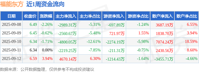 资金流向数据方面,本周福能东方主力资金合计净流出7899.13万元,游资资金合计净流出3675.86万元,散户资金合计净流入1.16亿元。本周资金流向一览见下表:
