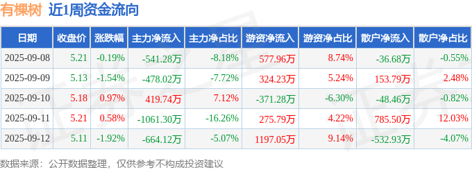资金流向数据方面,本周有棵树主力资金合计净流出2324.98万元,游资资金合计净流入2003.75万元,散户资金合计净流入321.22万元。本周资金流向一览见下表: