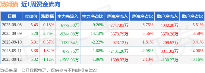 沪深股通持股方面,截止2025年9月12日收盘,汤姆猫深股通持股数为2394.86万股,占流通股比为76.0%。