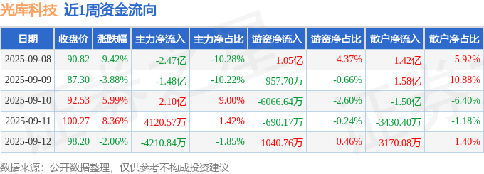资金流向数据方面,本周光库科技主力资金合计净流出1.86亿元,游资资金合计净流入3816.45万元,散户资金合计净流入1.47亿元。本周资金流向一览见下表: