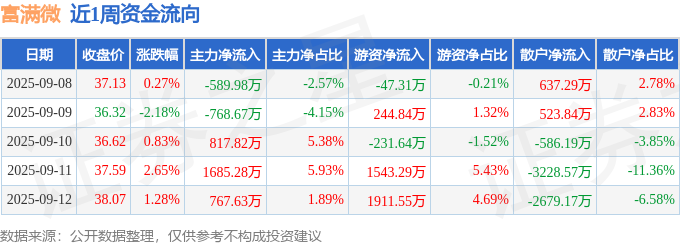 资金流向数据方面,本周富满微主力资金合计净流入1912.08万元,游资资金合计净流入3420.73万元,散户资金合计净流出5332.81万元。本周资金流向一览见下表: