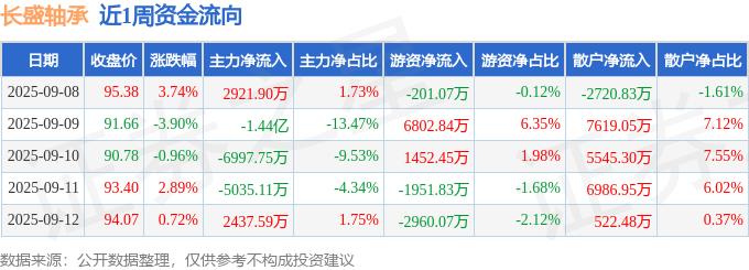 资金流向数据方面,本周长盛轴承主力资金合计净流出2.11亿元,游资资金合计净流入3142.32万元,散户资金合计净流入1.8亿元。本周资金流向一览见下表: