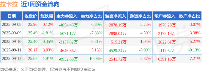 资金流向数据方面,本周拉卡拉主力资金合计净流出1.65亿元,游资资金合计净流入3503.92万元,散户资金合计净流入1.3亿元。本周资金流向一览见下表: