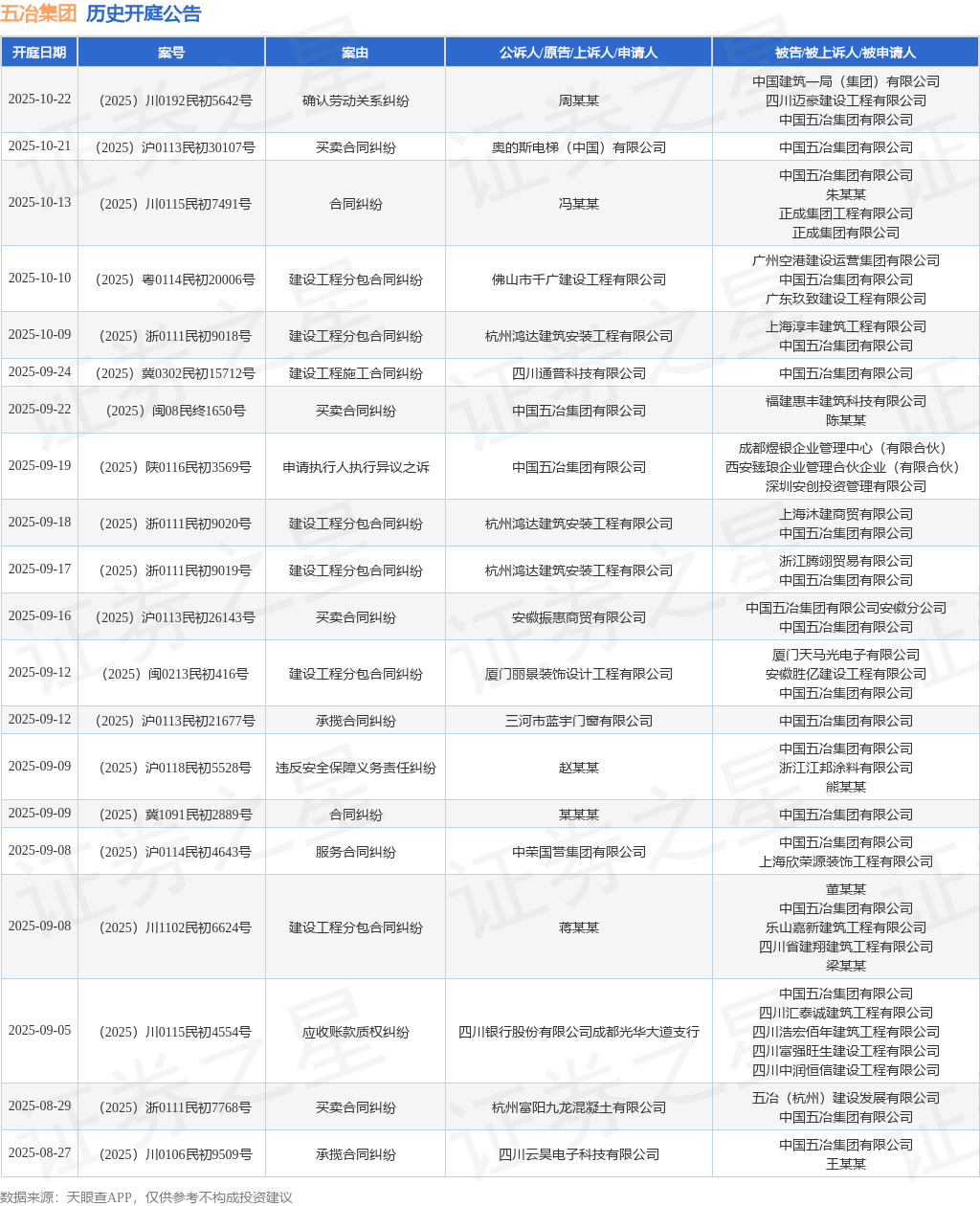证券之星消息,根据天眼查APP显示,近日公布了一则中国五冶集团有限公司作为被告/被上诉人的开庭公告,详细内容如下:
