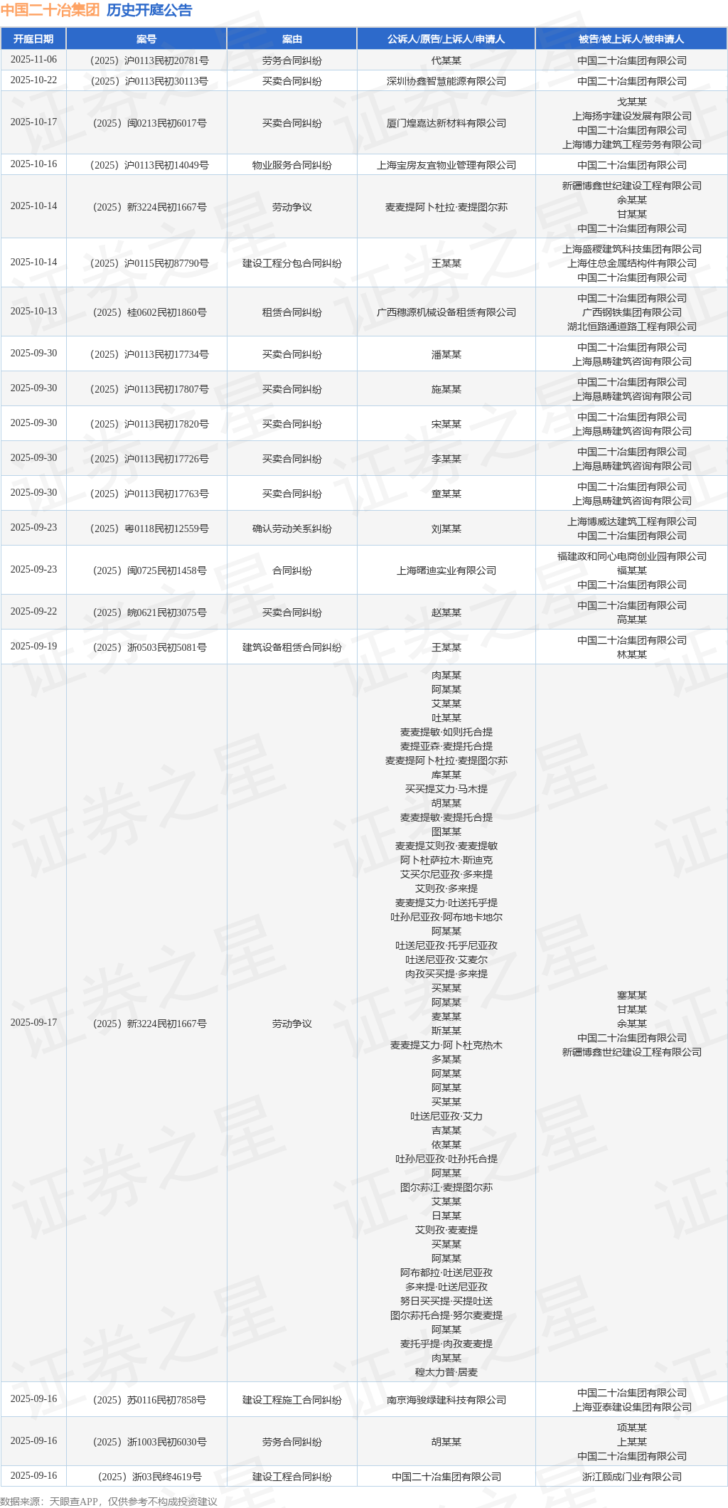 证券之星消息,根据天眼查APP显示,近日公布了一则中国二十冶集团有限公司作为被告/被上诉人的开庭公告,详细内容如下: