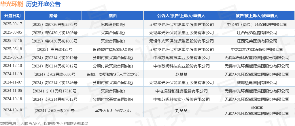 证券之星消息,根据天眼查APP显示,近日公布了一则无锡华光环保能源集团股份有限公司作为原告/上诉人的开庭公告,详细内容如下: