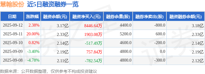 慧翰股份融资融券信息显示,融资方面,当日融资买入1.36亿元,融资偿还5165.53万元,融资净买入8446.64万元。融券方面,融券卖出0.0股,融券偿还800.0股,融券余量4400.0股,融券余额60.64万元。融资融券余额3.18亿元。