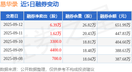 融券方面,当日融券卖出6.61万股,融券偿还2200.0股,融券净卖出6.39万股,融券余量26.82万股,近3个交易日已连续净卖出累计8.34万股,近20个交易日中有12个交易日出现融券净卖出。