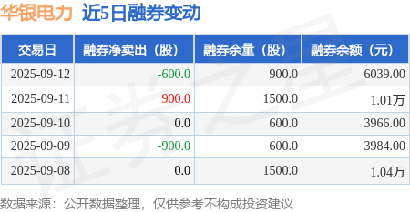 证券之星消息,9月12日,华银电力(600744)融资买入3868.94万元,融资偿还3398.47万元,融资净买入470.47万元,融资余额2.88亿元,近20个交易日中有11个交易日出现融资净买入。