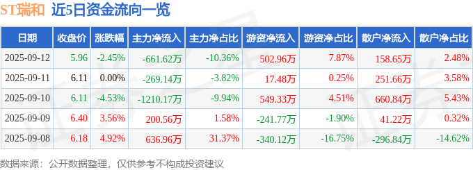 9月12日的资金流向数据方面,主力资金净流出661.62万元,占总成交额10.36%,游资资金净流入502.96万元,占总成交额7.87%,散户资金净流入158.65万元,占总成交额2.48%。
