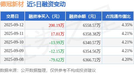 证券之星消息,9月12日,德冠新材(001378)融资买入426.59万元,融资偿还226.4万元,融资净买入200.19万元,融资余额6558.57万元,近20个交易日中有12个交易日出现融资净买入。