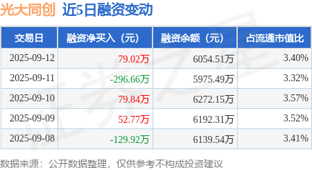 证券之星消息,9月12日,光大同创(301387)融资买入531.05万元,融资偿还452.03万元,融资净买入79.02万元,融资余额6054.51万元。