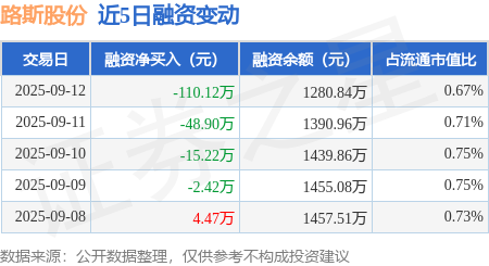 证券之星消息,9月12日,路斯股份(832419)融资买入35.98万元,融资偿还146.1万元,融资净卖出110.12万元,融资余额1280.84万元,近20个交易日中有11个交易日出现融资净买入。