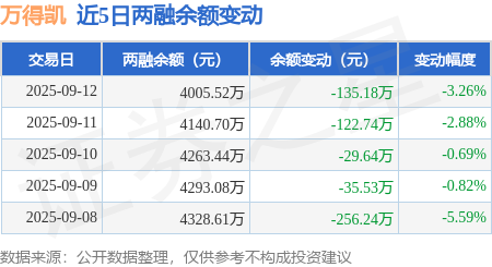 证券之星消息,9月12日,万得凯(301309)融资买入261.4万元,融资偿还396.58万元,融资净卖出135.18万元,融资余额4005.52万元。