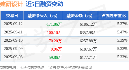 证券之星消息,9月12日,建研设计(301167)融资买入213.85万元,融资偿还385.71万元,融资净卖出171.86万元,融资余额6186.12万元。