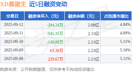 证券之星消息,9月12日,XD基蛋生(603387)融资买入327.02万元,融资偿还621.25万元,融资净卖出294.24万元,融资余额2.08亿元,近20个交易日中有13个交易日出现融资净买入。