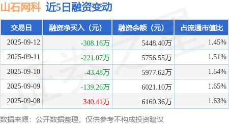 证券之星消息,9月12日,山石网科(688030)融资买入467.69万元,融资偿还775.85万元,融资净卖出308.16万元,融资余额5448.4万元。