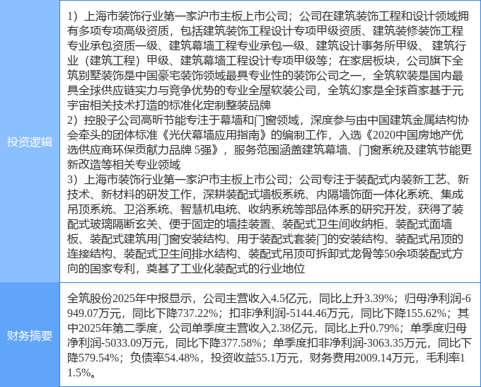该股为装修装饰,装配式建筑,建筑节能概念热股,当日装修装饰概念上涨0.45%,装配式建筑概念上涨0.4%,建筑节能概念上涨0.34%。