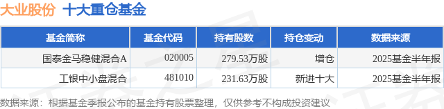 根据2025基金半年报公募基金重仓股数据,重仓该股的公募基金共2家,其中持有数量最多的公募基金为国泰基金的国泰金马稳健混合A。国泰金马稳健混合A目前规模为7.76亿元,最新净值1.2574(9月12日),较上一交易日下跌1.26%,近一年上涨47.55%。该公募基金现任基金经理为谢泓材。