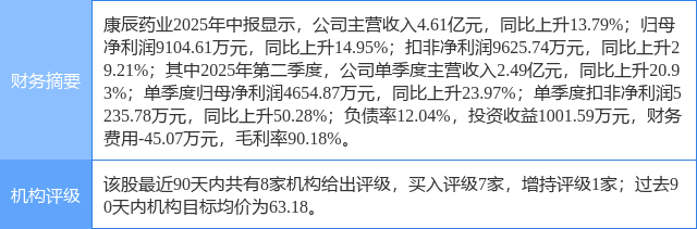 今日康辰药业(603590)涨5.24%,收盘报57.81元。
