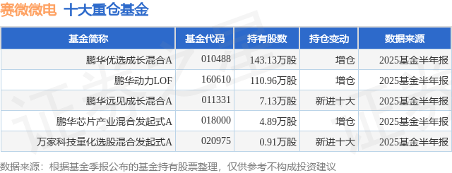 根据2025基金半年报公募基金重仓股数据,重仓该股的公募基金共5家,其中持有数量最多的公募基金为鹏华基金的鹏华优选成长混合A。鹏华优选成长混合A目前规模为20.64亿元,最新净值0.8286(9月12日),较上一交易日上涨1.64%,近一年上涨65.19%。该公募基金现任基金经理为蒋鑫。蒋鑫在任的基金产品包括:鹏华健康环保混合,管理时间为2016年6月24日至今,期间收益率为132.48%;鹏华普天收益混合,管理时间为2017年7月29日至今,期间收益率为116.36%;鹏华远见成长混合A,管理时间为2021年6月2日至今,期间收益率为-11.19%。