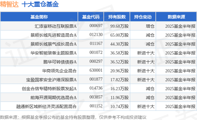 根据2025基金半年报公募基金重仓股数据,重仓该股的公募基金共21家,其中持有数量最多的公募基金为汇添富基金的汇添富移动互联股票A。汇添富移动互联股票A目前规模为23.17亿元,最新净值2.472(9月12日),较上一交易日上涨2.15%,近一年上涨104.98%。该公募基金现任基金经理为沈若雨。沈若雨在任的基金产品包括:汇添富创新活力混合A,管理时间为2021年1月12日至今,期间收益率为8.92%;汇添富互联网核心资产六个月持有混合A,管理时间为2021年9月15日至今,期间收益率为22.16%;汇添富ESG可持续成长股票A,管理时间为2023年12月28日至今,期间收益率为77.76%;