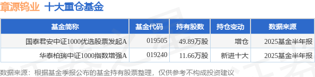 根据2025基金半年报公募基金重仓股数据,重仓该股的公募基金共2家,其中持有数量最多的公募基金为国泰海通资管的国泰君安中证1000优选股票发起A。国泰君安中证1000优选股票发起A目前规模为1.55亿元,最新净值1.5694(9月12日),较上一交易日上涨0.11%,近一年上涨87.46%。该公募基金现任基金经理为胡崇海。胡崇海在任的基金产品包括:国泰君安中证500指数增强A,管理时间为2021年12月15日至今,期间收益率为25.13%;国泰君安中证1000指数增强A,管理时间为2022年8月16日至今,期间收益率为42.96%;国泰君安量化选股混合发起A,管理时间为2022年8月18日至今,期间收益率为44.14%;国泰君安沪深300指数增强发起A,管理时间为2023年4月19日至今,期间收益率为24.02%。