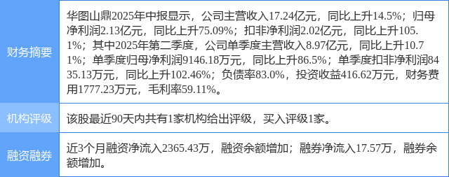 2025年8月29日,民生证券研究员苏多永发布了对华图山鼎的研报《2025年中报点评:战略转型成效显著,非学历培训快速增长》,该研报对华图山鼎给出“买入”评级。研报中预计2025-2027年公司营业收入分别为预33.28亿元、41.60亿元和47.84亿元,EPS分别为1.64元、2.05元和2.81元,动态PE分别为41倍、33倍和24倍。公司战略转型职业教育,大力发展公务员等考试培训业务,并华丽蜕变为线下公考新龙头。公司业绩持续释放,合同负债持续增长,看好公司未来成长性,维持“推荐”评级。证券之星数据中心根据近三年发布的研报数据计算,该研报作者对此股的盈利预测准确度为40.74%。