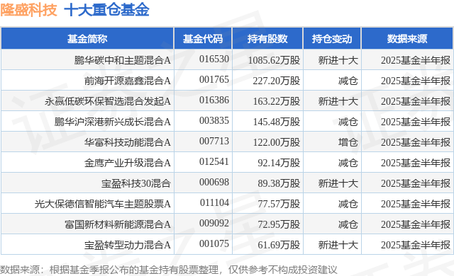 根据2025基金半年报公募基金重仓股数据,重仓该股的公募基金共22家,其中持有数量最多的公募基金为鹏华基金的鹏华碳中和主题混合A。鹏华碳中和主题混合A目前规模为20.8亿元,最新净值1.9326(9月12日),较上一交易日下跌0.72%,近一年上涨206.76%。该公募基金现任基金经理为闫思倩。闫思倩在任的基金产品包括:鹏华沪深港新兴成长混合A,管理时间为2022年5月7日至今,期间收益率为49.52%;鹏华新能源汽车混合A,管理时间为2022年7月26日至今,期间收益率为10.28%;鹏华科技驱动混合发起式A,管理时间为2024年8月29日至今,期间收益率为41.65%。