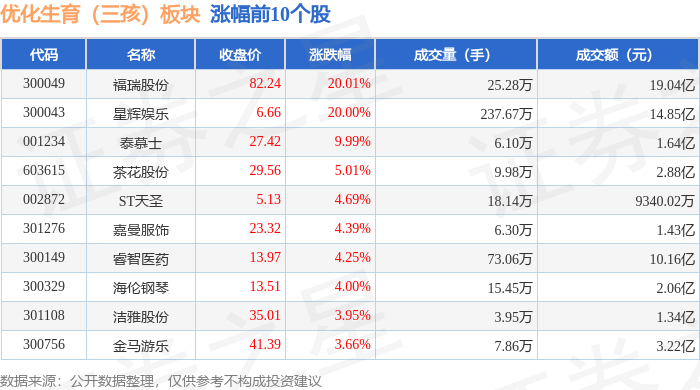 从资金流向上来看,当日优化生育(三孩)板块主力资金净流出3.37亿元,游资资金净流出1.36亿元,散户资金净流入4.73亿元。优化生育(三孩)板块个股资金流向见下表: