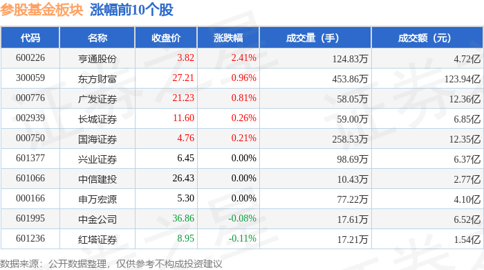 从资金流向上来看,当日参股基金板块主力资金净流出26.04亿元,游资资金净流入9.45亿元,散户资金净流入16.59亿元。参股基金板块个股资金流向见下表: