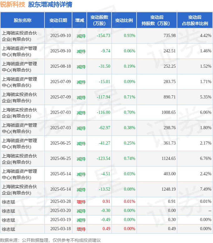 截至2025年9月15日收盘,锐新科技(300828)报收于16.36元,下跌1.51%,换手率2.23%,成交量2.78万手,成交额4553.08万元。