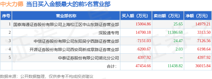 从龙虎榜公布的当日买卖数据来看,机构合计净卖出603.84万元,北向资金合计净买入3313.5万元。上海中山东路、一瞬流光等知名游资榜上有名。(知名游资上海中山东路一般指国泰海通证券股份有限公司上海松江区中山东路证券营业部席位、知名游资一瞬流光一般指中泰证券股份有限公司湖北分公司席位,根据市场资料整理,仅供参考)