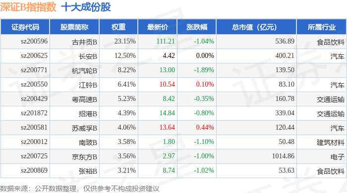 资金流向方面,深证B指(399108)指数成份股当日主力资金净流出合计1436.2万元,游资资金净流入合计485.7万元,散户资金净流入合计950.51万元。成份股资金流向详情见下表: