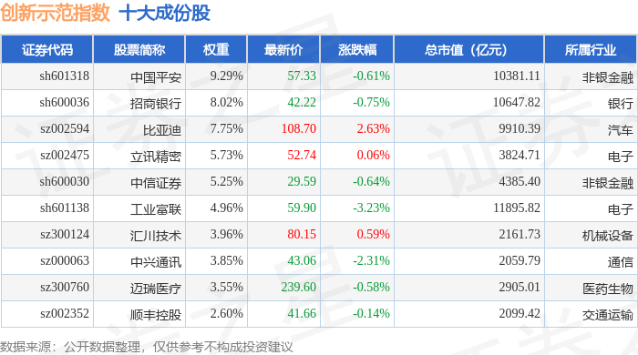 证券之星消息,9月15日,创新示范(399351)指数报收于10649.82点,跌0.34%,成交1565.01亿元,换手率1.91%。当日该指数成份股中,上涨的有37家,怡亚通以10.02%的涨幅领涨,下跌的有61家,中国宝安以4.13%的跌幅领跌。