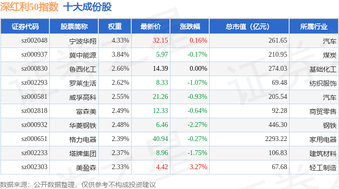 深红利50(399672)指数十大成份股详情如下: