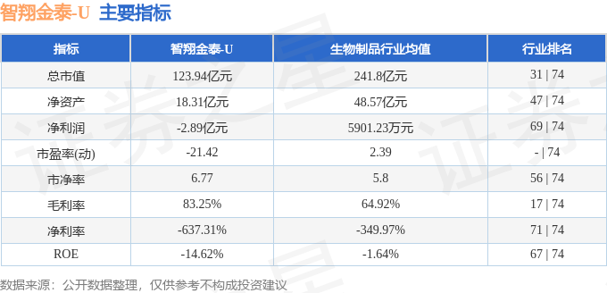 智翔金泰2025年中报显示,公司主营收入4539.18万元,同比上升358429.65%;归母净利润-2.89亿元,同比上升20.07%;扣非净利润-3.17亿元,同比上升12.91%;其中2025年第二季度,公司单季度主营收入2523.6万元,同比上升398555.52%;单季度归母净利润-1.69亿元,同比上升14.94%;单季度扣非净利润-1.72亿元,同比上升13.7%;负债率41.26%,投资收益295.33万元,财务费用-592.41万元,毛利率83.25%。智翔金泰(688443)主营业务:抗体药物的研发、生产与销售。