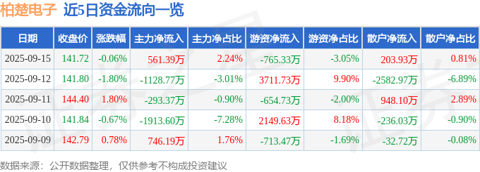 9月15日的资金流向数据方面,主力资金净流入561.39万元,占总成交额2.24%,游资资金净流出765.33万元,占总成交额3.05%,散户资金净流入203.93万元,占总成交额0.81%。