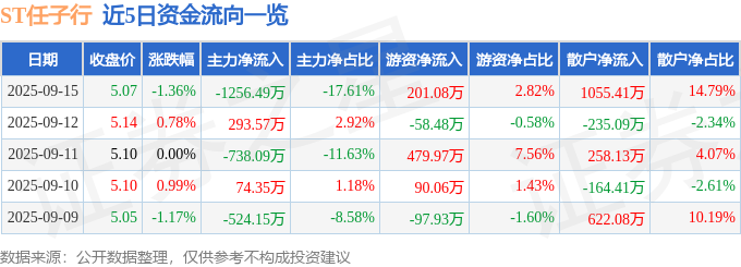 9月15日的资金流向数据方面,主力资金净流出1256.49万元,占总成交额17.61%,游资资金净流入201.08万元,占总成交额2.82%,散户资金净流入1055.41万元,占总成交额14.79%。