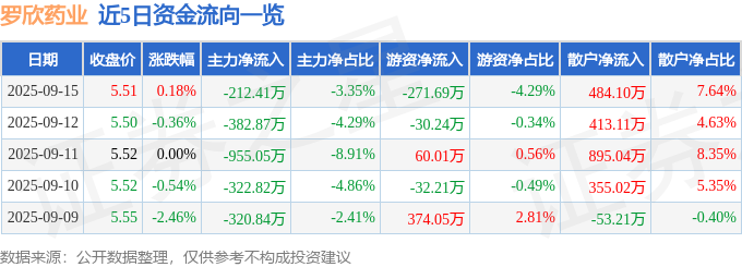 证券之星消息,截至2025年9月15日收盘,罗欣药业(002793)报收于5.51元,上涨0.18%,换手率1.06%,成交量11.53万手,成交额6334.44万元。