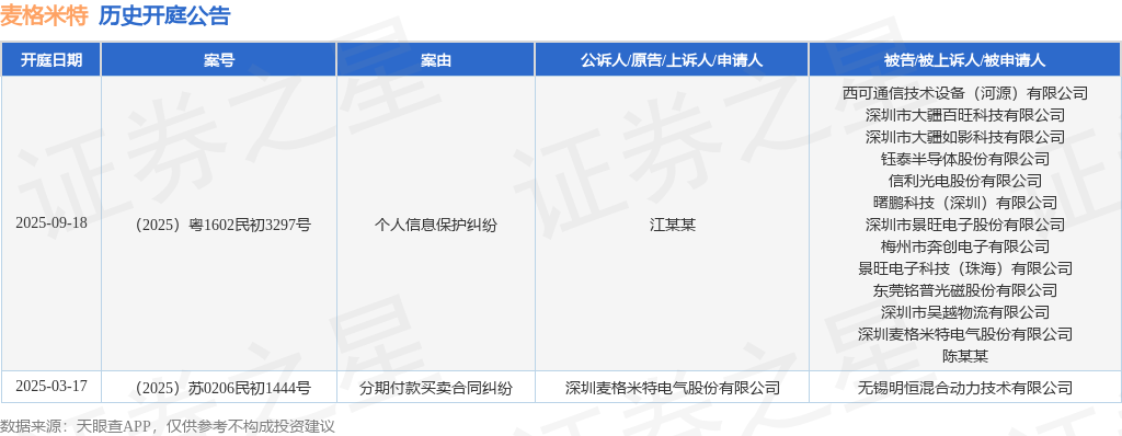 证券之星消息,根据天眼查APP显示,近日公布了一则深圳麦格米特电气股份有限公司作为被告/被上诉人的开庭公告,详细内容如下: