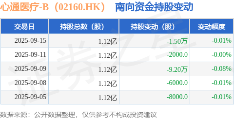 证券之星消息,9月15日南向资金减持1.5万股心通医疗-B(02160.HK)。近5个交易日中,获南向资金减持的有5天,累计净减持12.3万股。近20个交易日中,获南向资金减持的有20天,累计净减持299.7万股。截至目前,南向资金持有心通医疗-B(02160.HK)1.12亿股,占公司已发行普通股的4.64%。