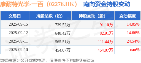 证券之星消息,9月15日南向资金增持91.1万股康耐特光学-一百(02276.HK)。截至目前,南向资金持有康耐特光学-一百(02276.HK)739.52万股,占公司已发行普通股的1.53%。